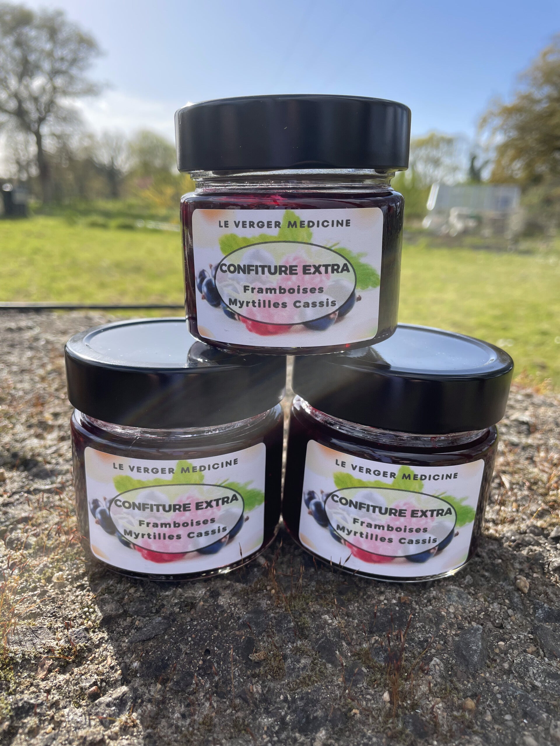 Confiture artisanale confectionnée avec les fruits du verger cultivés en maraichage sol vivant